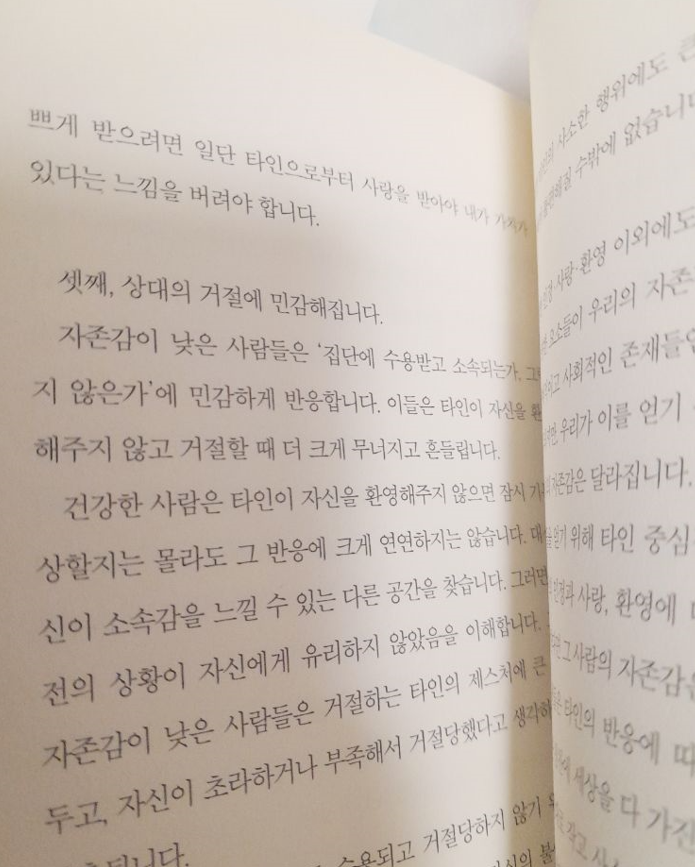 그러던 어느 날, 우연히 책꽂이를 정리하다 그 책의 한 페이지를 다시 보게 되었습니다. 페이지 059, **"불안정한 자존감 때문에 힘들어하는 사람들"**이라는 제목이 저에게 말을 거는 듯했습니다.